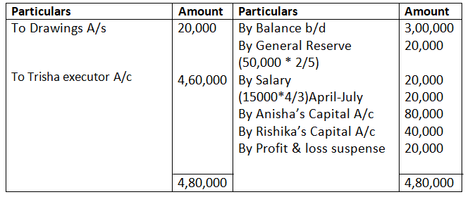 Deceased Partner’s Share of Goodwill:-