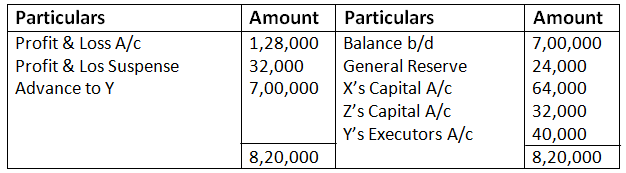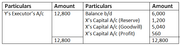 - Y’s share in the profit or loss of the firm till the date of his death.