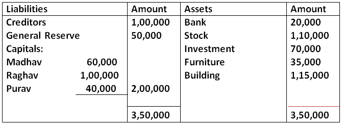 Balance Sheet Of Madhav, Raghav and Purva