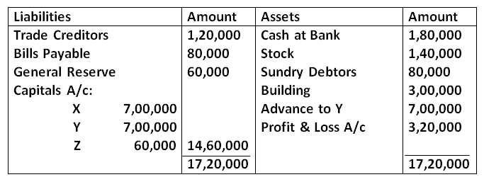 Q32. X, Y & Z were partners in firm sharing profits in the ratio of 2:2:1. On 31st March, 2025, their Balance Sheet was as follows: