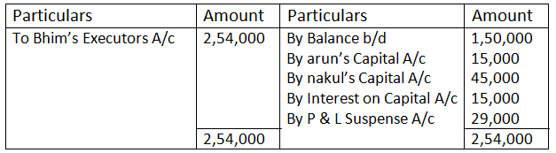 Profit after Interest on Capital – 1, 60,000 – 15,000 – 1, 45,000 Bhim’s share of profit – 1, 45,000 x 1/5 – 29,000