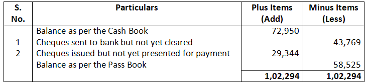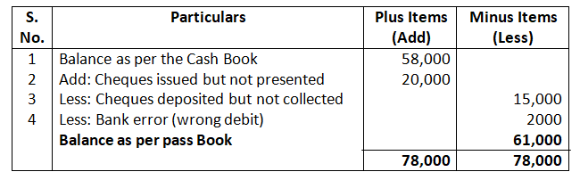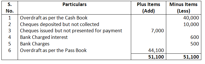 4. 1, 50,000 entered in Pass Book for cheque realised but not in the Cash Book.
