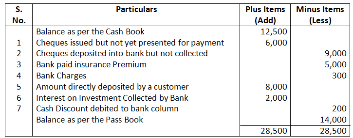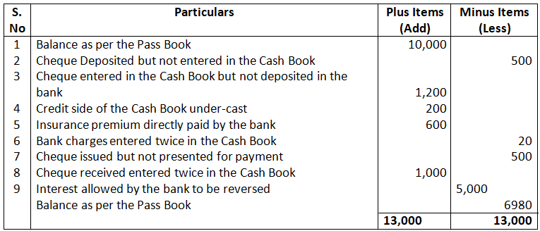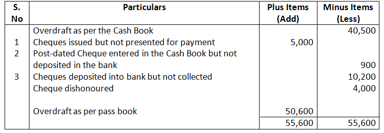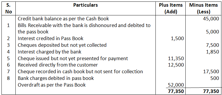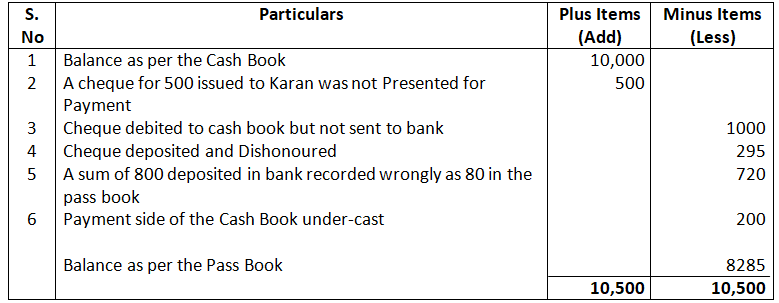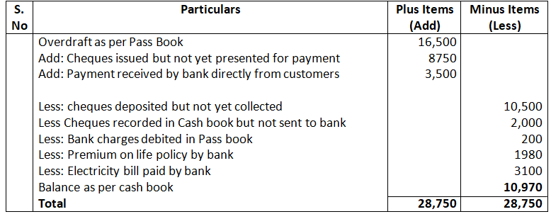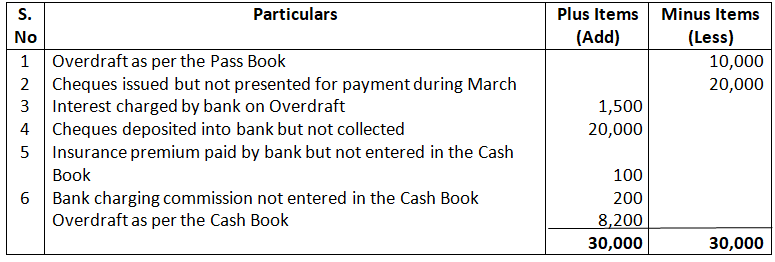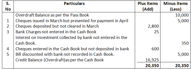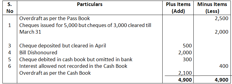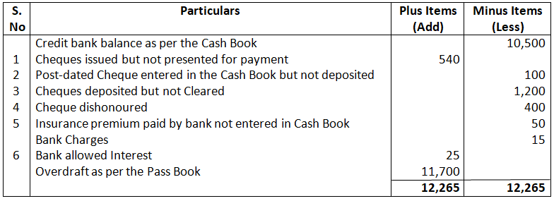 On 31st March, 2025, a merchant’s Cash Book showed a credit bank balance of 10,500 but due to the following reasons the Pass Book showed a difference.