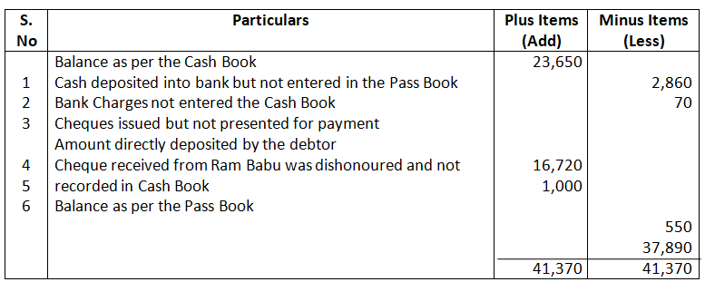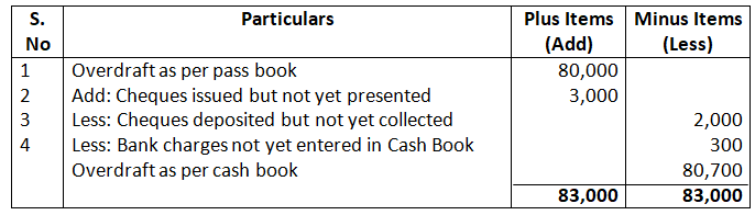 • Bank charges not yet recorded in Cash Book                              Rs.300