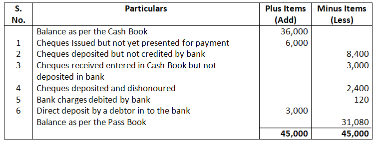 1. Cheques paid into bank 8,000 but out of these only cheques of 6,500 credited by bankers.