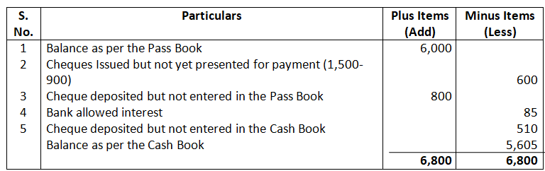 4. There was a credit of 85 for interest on current Account in the pass book.