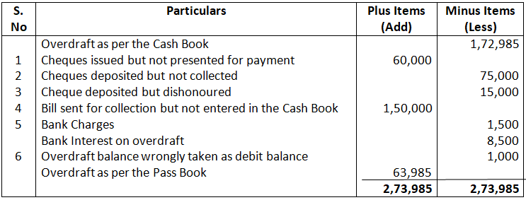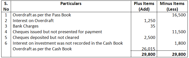 1. Bank Pass Book showed an overdraft of 16,500 on 31st October.