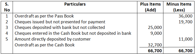 Q29. On checking the Bank Pass Book it was found that it showed on overdraft of 5,220 as on 31st March, 2025, while as per Ledger it was different. The following differences were noted: