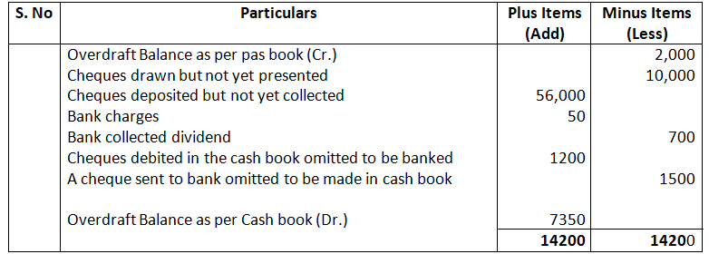 • A cheque of Rs.1,200 debited in the Cash Book was omitted to be banked.