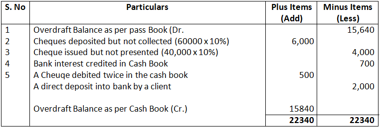 [Ans.: Overdraft as per Cash Book- 15,840.]