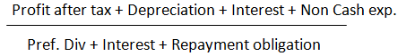 3. Debt Service Coverage Ratio (DSCR): Debt Service Coverage Ratio takes care of the deficiencies referred to in the Interest Coverage Ratio (ICR). The cash profits generated by the operations are compared with the total cash required for the service of the debt and the preference share capital. It is calculated as follows: