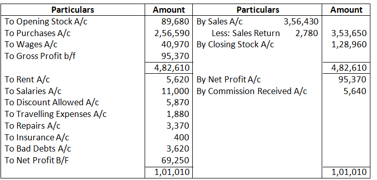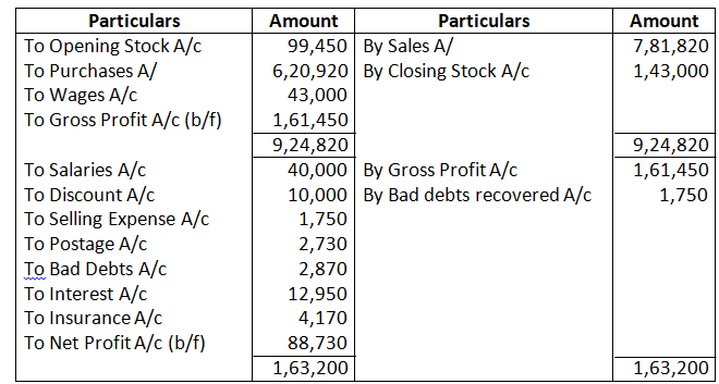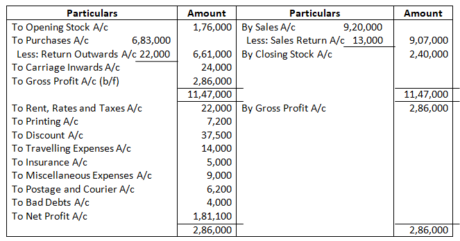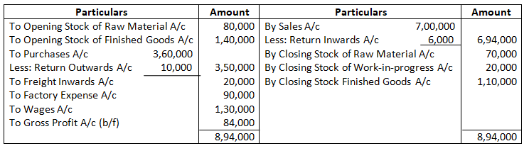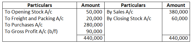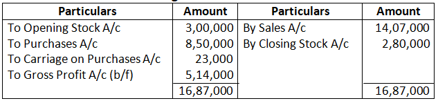 Pass Closing Journal entries on the basis of the above Trading Account. Also, transfer the Gross Profit to Profit & Loss Account.