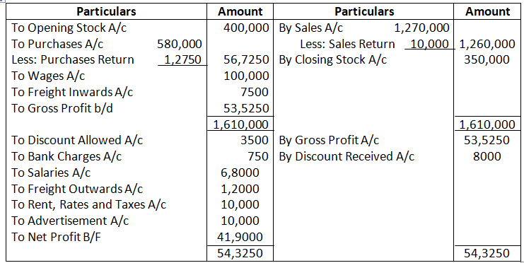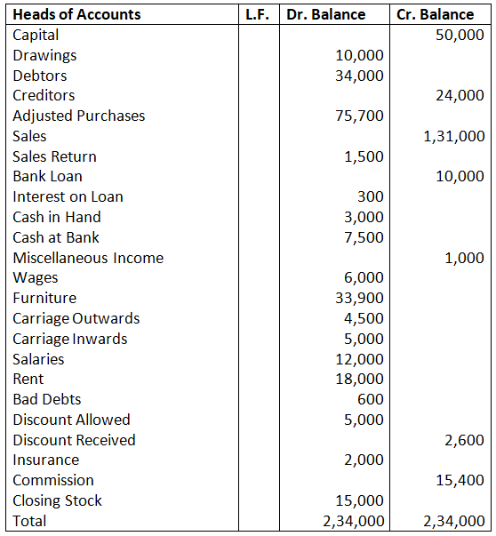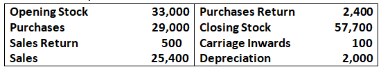 Adjusted Purchases 6, 60,000; Sales 7, 44,000; Closing Stock 50,400; Freight and Carriage Inwards 3,600; Wages 6,000; Freight and Cartage Outwards 2,000