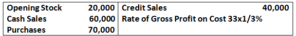 Cost of Goods Sold : Rs.2,50,000%, Gross Profit 20% on Sales.