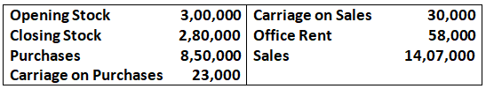 Opening stock = 10,00,000 – 10,00,000 – 2500 + 1,00,000