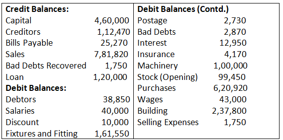 You are required to prepare Trading Account, Profit and Loss Account and Balance Sheet as at 31st March, 2025.