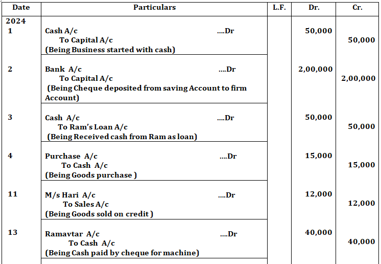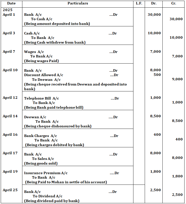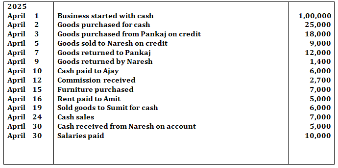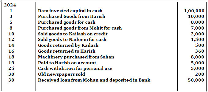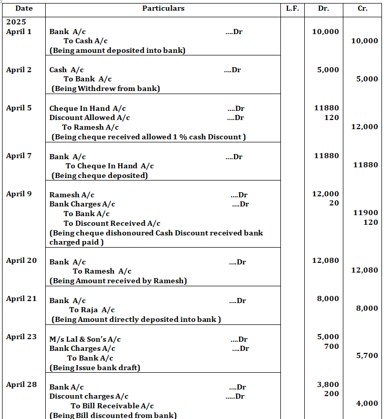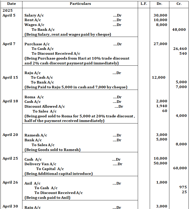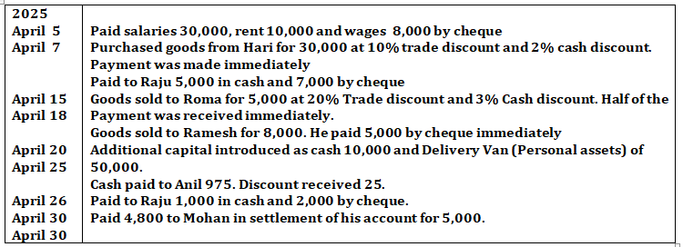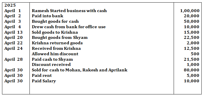 18. Following transactions of Ramesh for April, 2024 are given below. Journalise them.