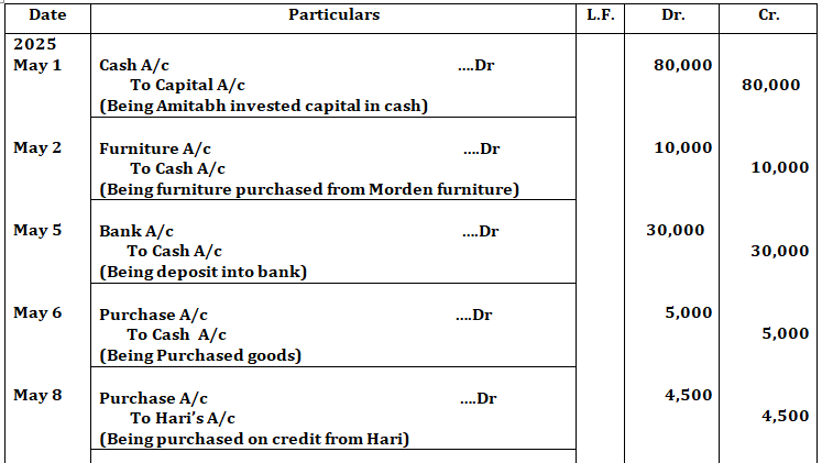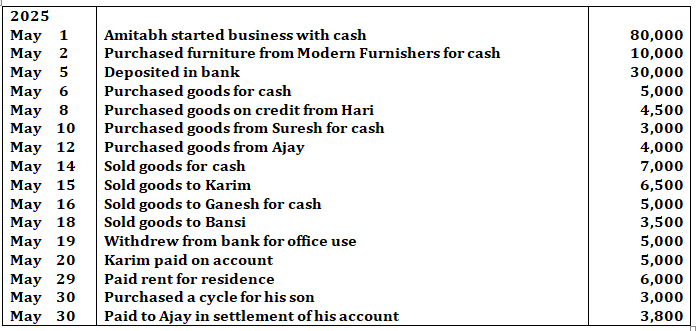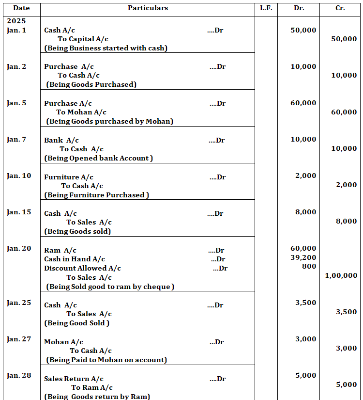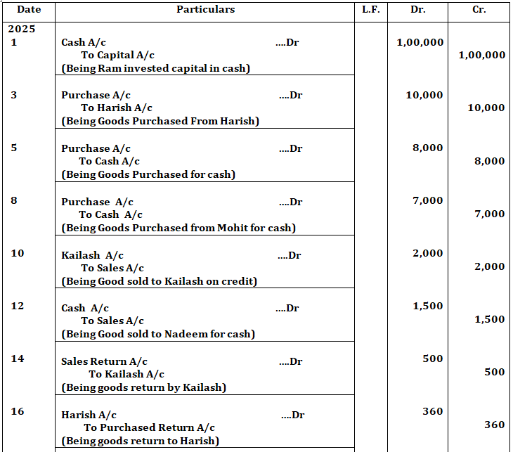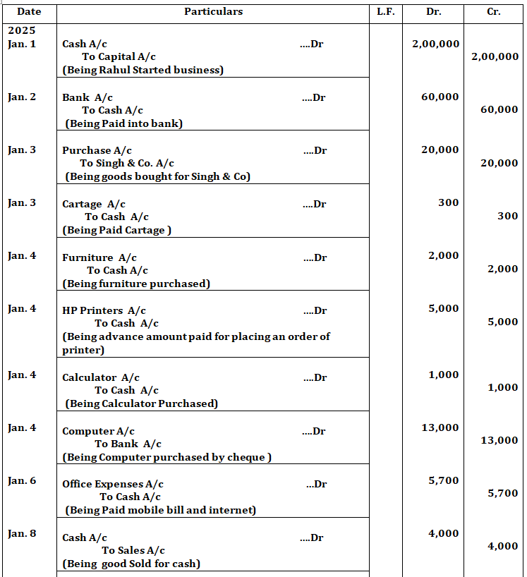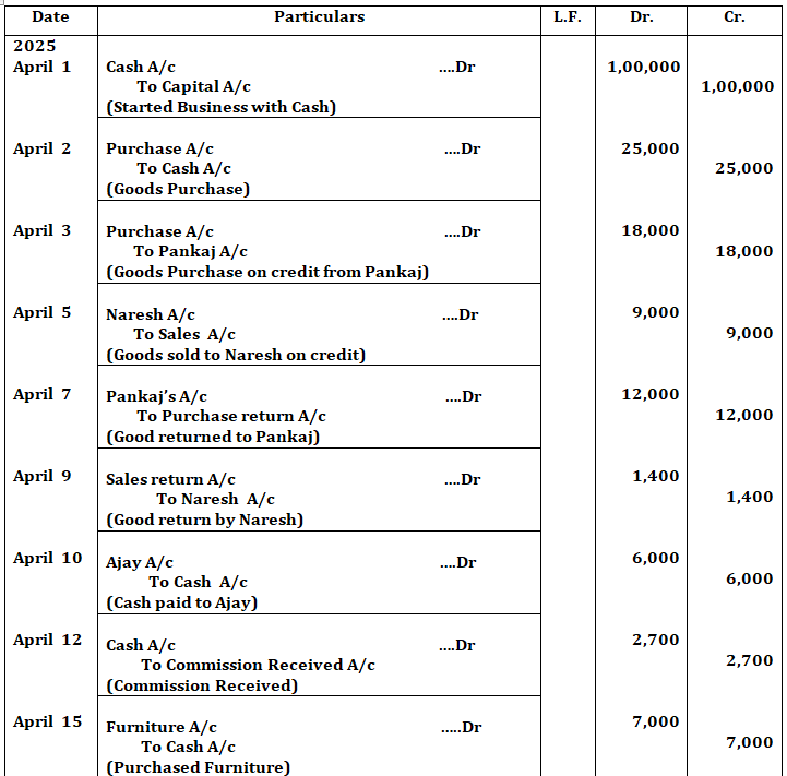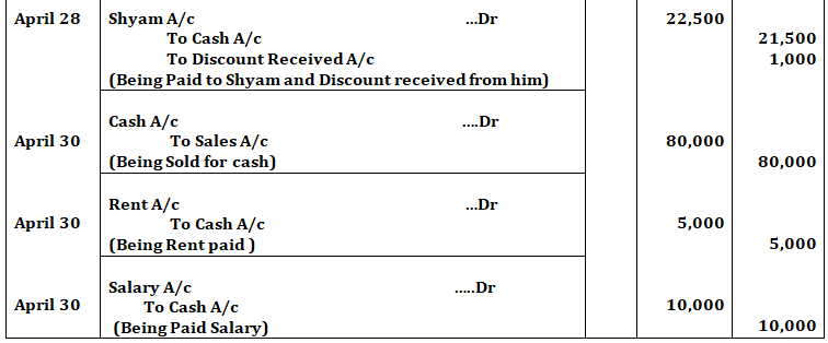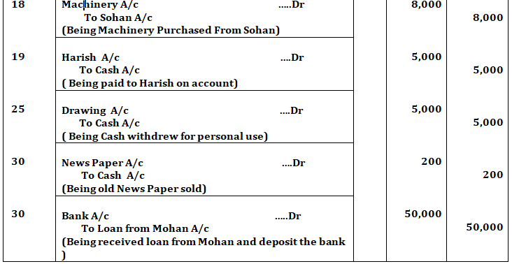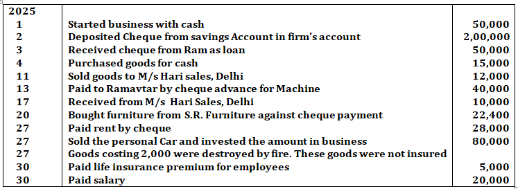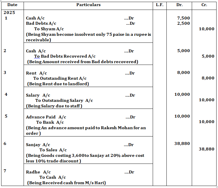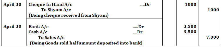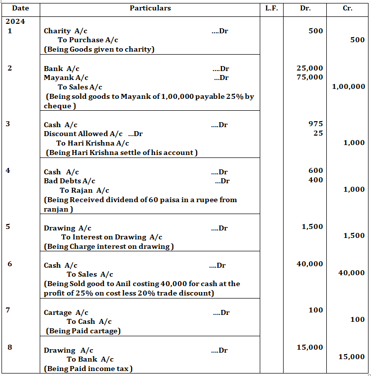 - Sold goods to Mayank of 1, 00,000, payable 25% by cheque at the time of sale and balance after 30 days of sale.