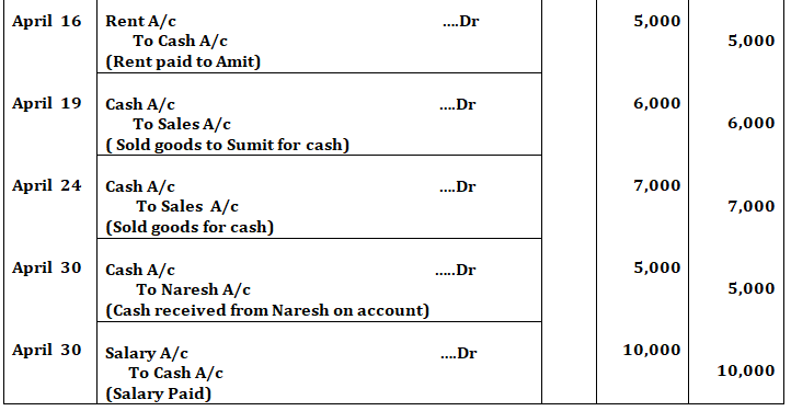 - Received from Amrit 50,000 by cheque on account against dues of 60,000.