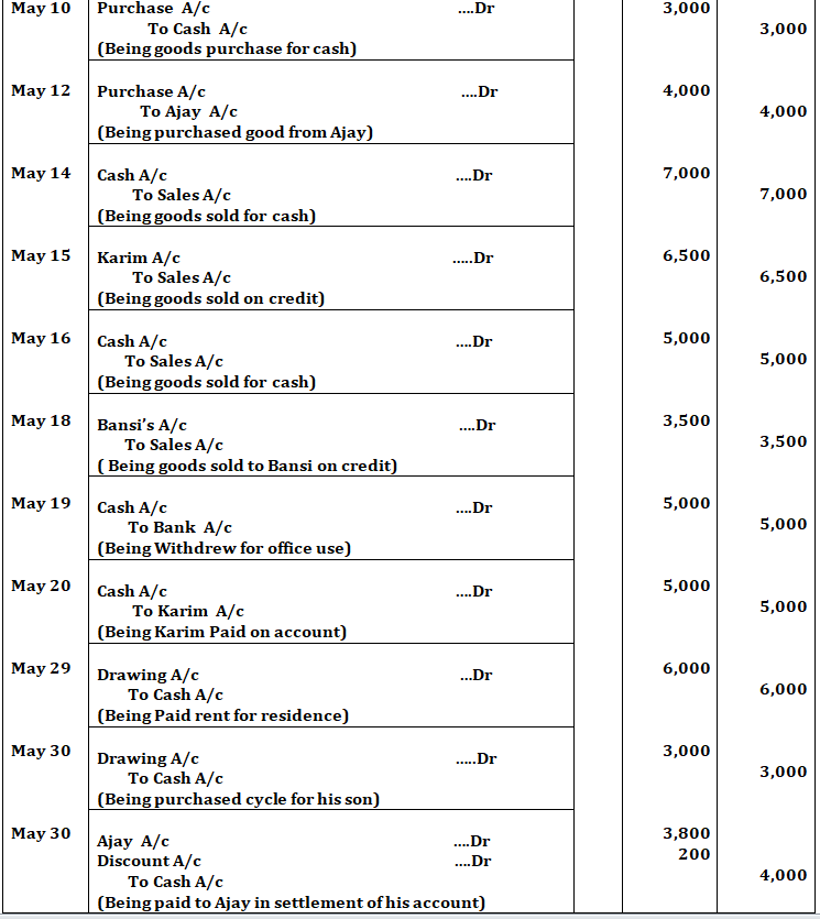 - Sold Goods to Aman of list price of 30,000 at 10% Trade discount against cash.