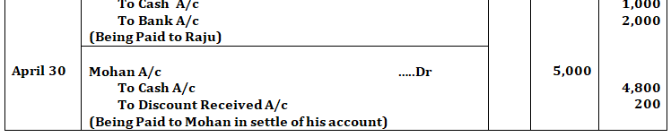 (iv) Paid Rs.2,880 to Mohan in settlement of his account for Rs.3,000.
