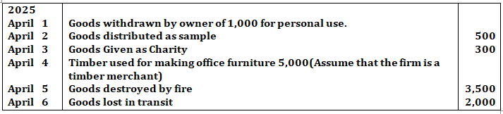 - Goods used in making Furniture (Sales Price 5,000 cost 4,000).