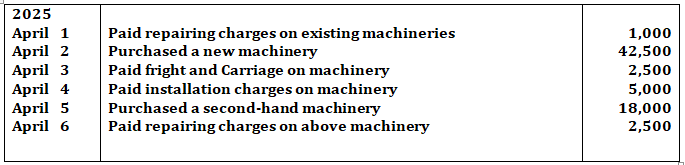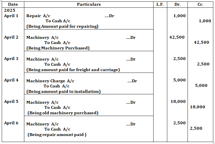 - bought a machinery for 25,00,000 by a down-payment of 10%.