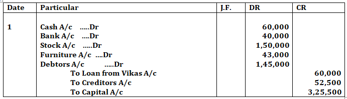 - Vijay started business with cash 3,00,000; Bank deposit of 40,00,000 and furniture 4,00,000.