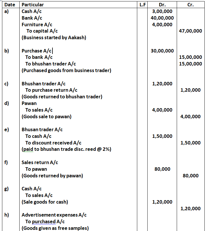 - Returned goods of 1,20,000 to Bhusan Traders.