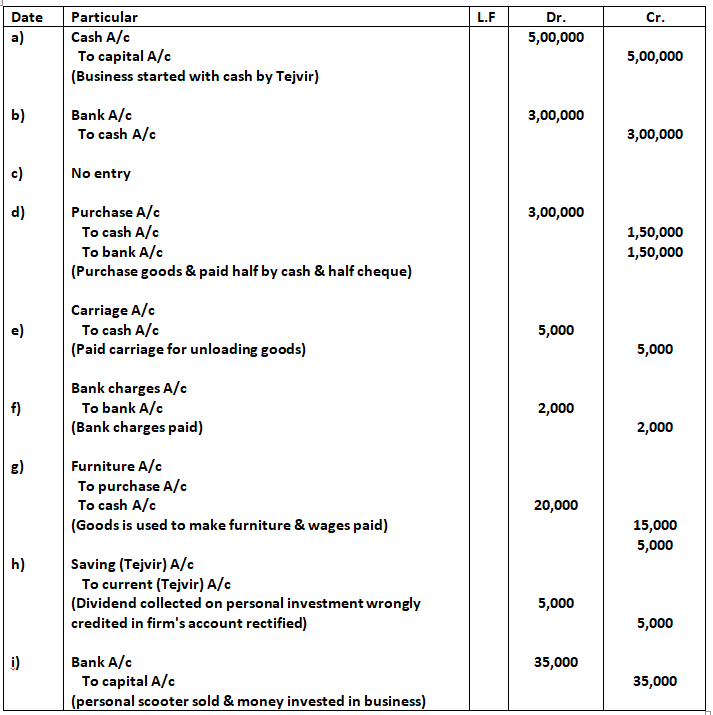- Tejvir sold his personal sector for 35,000 and deposited the amount in firm’s bank account.