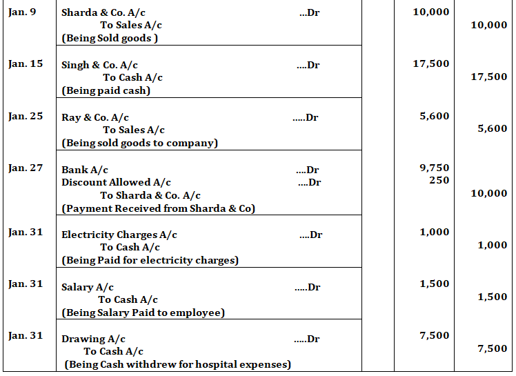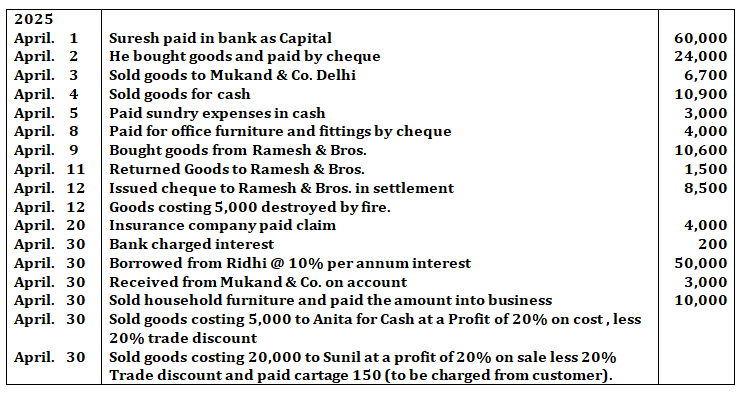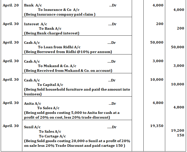 - Sold goods to Anil costing 40,000 for cash at a profit of 25% on cost less 20% trade discount.