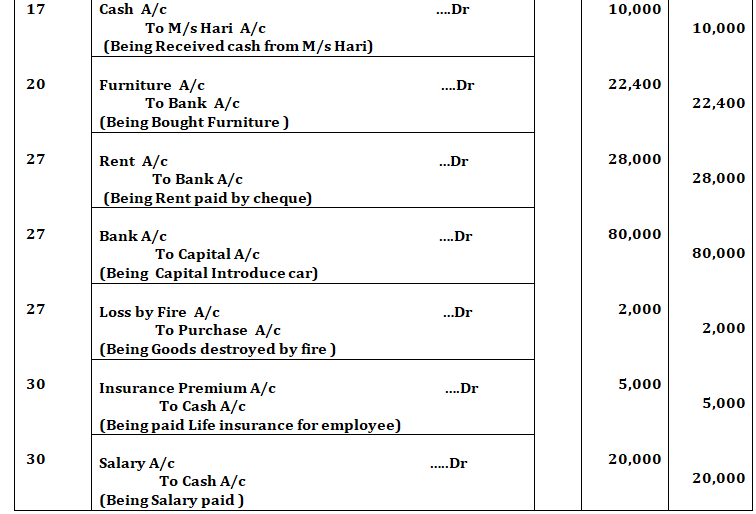 - Purchased goods from Hari & Co. of list price 40,000 for 35,000 against cash.